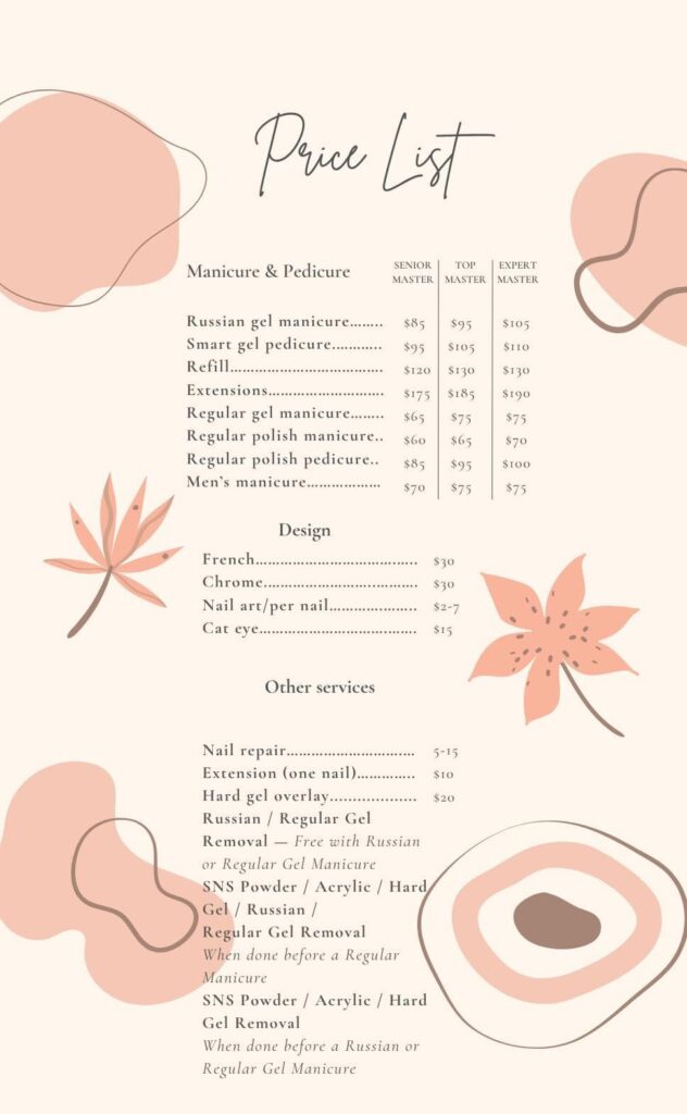 Welcome to our nail salon — a place where beauty begins with your fingertips. We offer professional manicure, pedicure, hand and nail care in a cozy atmosphere. Individual approach, high-quality materials and attentive masters — everything for your perfect look.